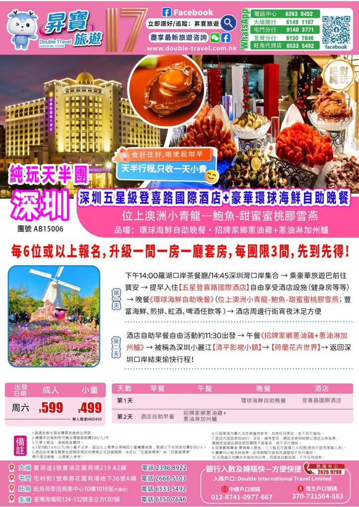 Home 廣東省短線系列 天半團系列 AB15006 深圳 登喜路酒店 純玩天半團