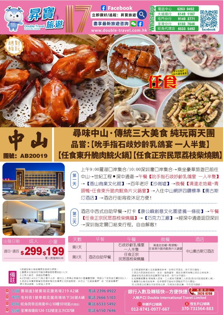Home 廣東省短線系列 兩天團系列 兩天團 (早上出發) AB20019 中山 傳統三大美食兩天團