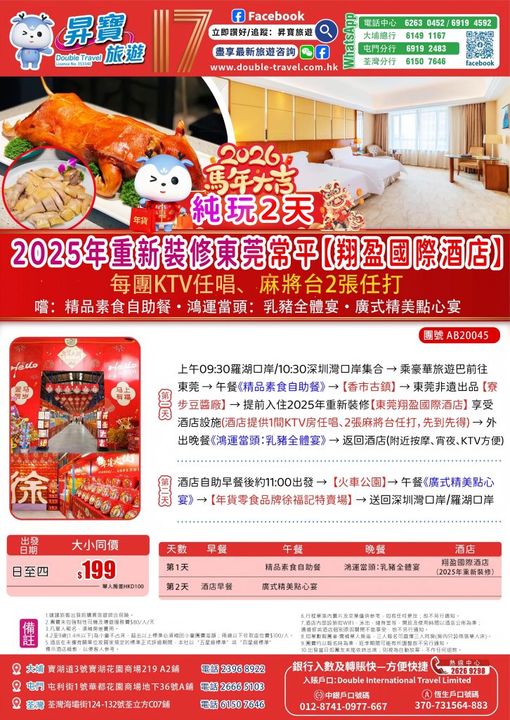 AB20045 東莞翔盈國際年貨純玩兩天團