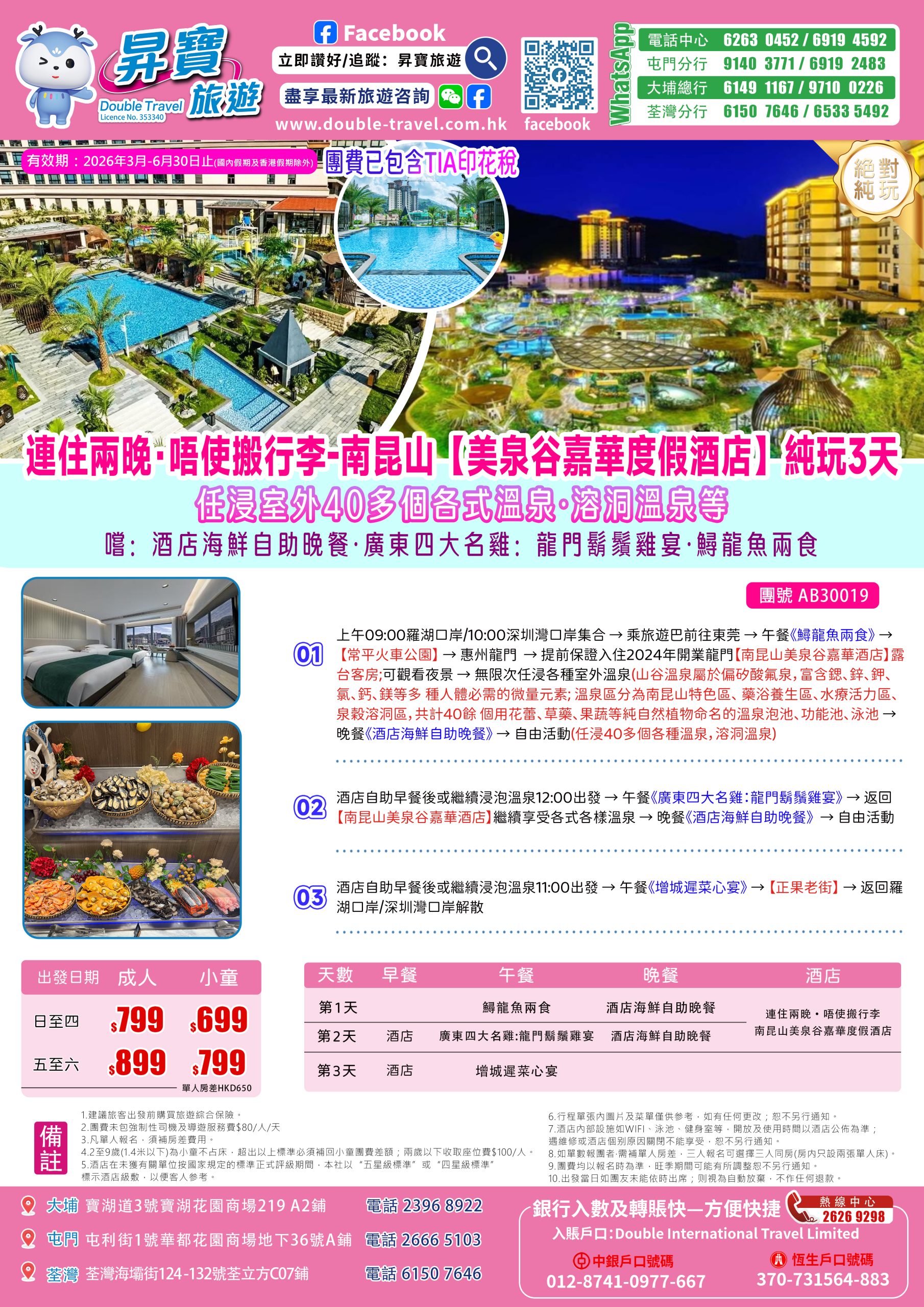 Home 廣東省短線系列 三,四天團系列 AB30019連住兩晚龍門美泉谷嘉華度假酒店 🔍 AB30019連住兩晚龍門美泉谷嘉華度假酒店 WishlistWishlist 分類: 廣東省短線系列, 三,四天團系列 Share your love 描述 相關商品 Quick view icon AB30019 龍門 美泉谷溫泉 純玩三天團 三,四天團系列查看內容 Quick view icon AB30022 僑鄉江門 尋味之旅 純玩 三天團 三,四天團系列查看內容 Quick view icon AB30023 竹溪山境溫泉酒店+惠州【裕華鉑金酒店】纯玩三天團 三,四天團系列查看內容 Quick view icon ABP20018重新裝修東莞【厚街富盈酒店】純玩兩天團(下午出發) 廣東省短線系列, 天半團系列查看內容