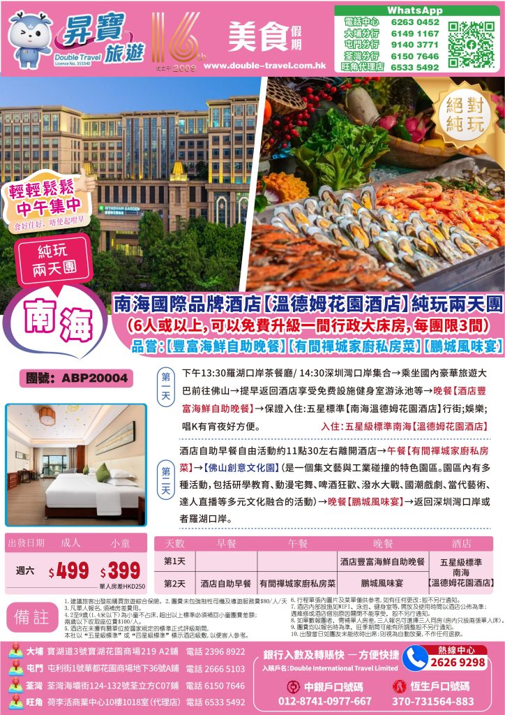 ABP20004 南海 溫德姆花園 純玩兩天團