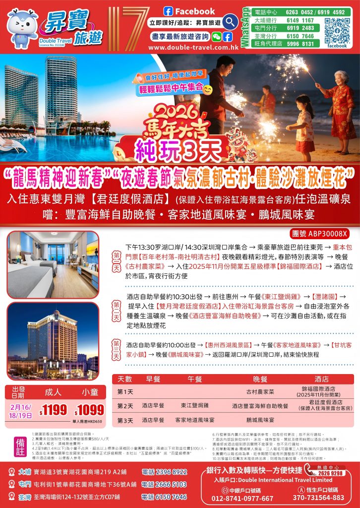 Home 節日推介 節日短線 ABP30008X 東莞錦福國際酒店+雙月灣君廷酒店純玩三天團(中午出發) 🔍 ABP30008X 東莞錦福國際酒店+雙月灣君廷酒店純玩三天團(中午出發) WishlistWishlist 分類: 節日短線 Share your love 描述 相關商品 Quick view icon AB20002X 赤坎古鎮純玩兩天團 節日短線查看內容 Quick view icon AB20005X 順德聯塑萬怡酒店+夜遊歡樂海岸兩天團 節日短線查看內容 Quick view icon AB30002X 東莞錦福國際登酒店+雙月灣君廷酒店純玩三天團(2月16-20日出發) 節日短線查看內容 Quick view icon AB20003X 中山珠海美食-純玩兩天團 節日短線查看內容