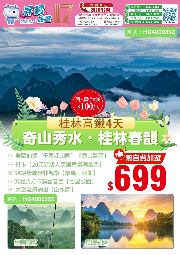 Home 中國高鐵線系列 HG40003SZ 桂林 高鐵 4 天團 🔍 HG40003SZ 桂林 高鐵 4 天團 WishlistWishlist 分類: 中國高鐵線系列, 本月精選推介, 快閃優惠 Share your love 描述 相關商品 Quick view icon ABP20017A 東莞 名廚 美食純玩兩天團 兩天團 (中午出發), 本月精選推介查看內容 Quick view icon QG50001SZ 貴州 高鐵 5 天團 中國高鐵線系列查看內容 Quick view icon AB15007 惠陽 裕華鉑金酒店 純玩天半團 天半團系列, 本月精選推介查看內容 Quick view icon HG60001SZ 張家界 邊城茶峒 6 天團 中國高鐵線系列查看內容