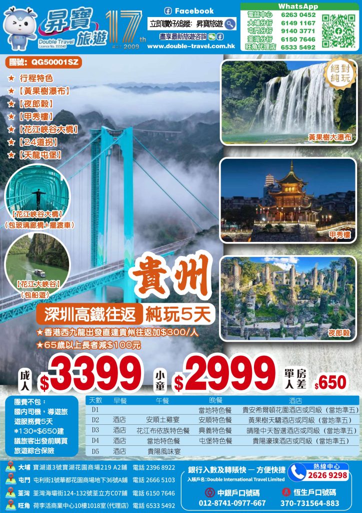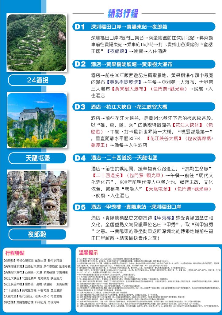 Home 中國高鐵線系列 QG50001SZ 貴州 高鐵 5 天團 🔍 QG50001SZ 貴州 高鐵 5 天團 WishlistWishlist 分類: 中國高鐵線系列 Share your love 描述 相關商品 Quick view icon HG60001SZ 張家界 邊城茶峒 6 天團 中國高鐵線系列查看內容 Quick view icon HG40003SZ 桂林 高鐵 4 天團 中國高鐵線系列, 本月精選推介, 快閃優惠查看內容 Quick view icon HG50004SZ 重慶 高鐵 5 天團 中國高鐵線系列查看內容